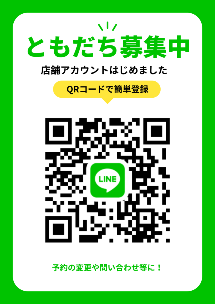 Instagram、LINEの店舗アカウントのフォロー、友達追加をお願いします。